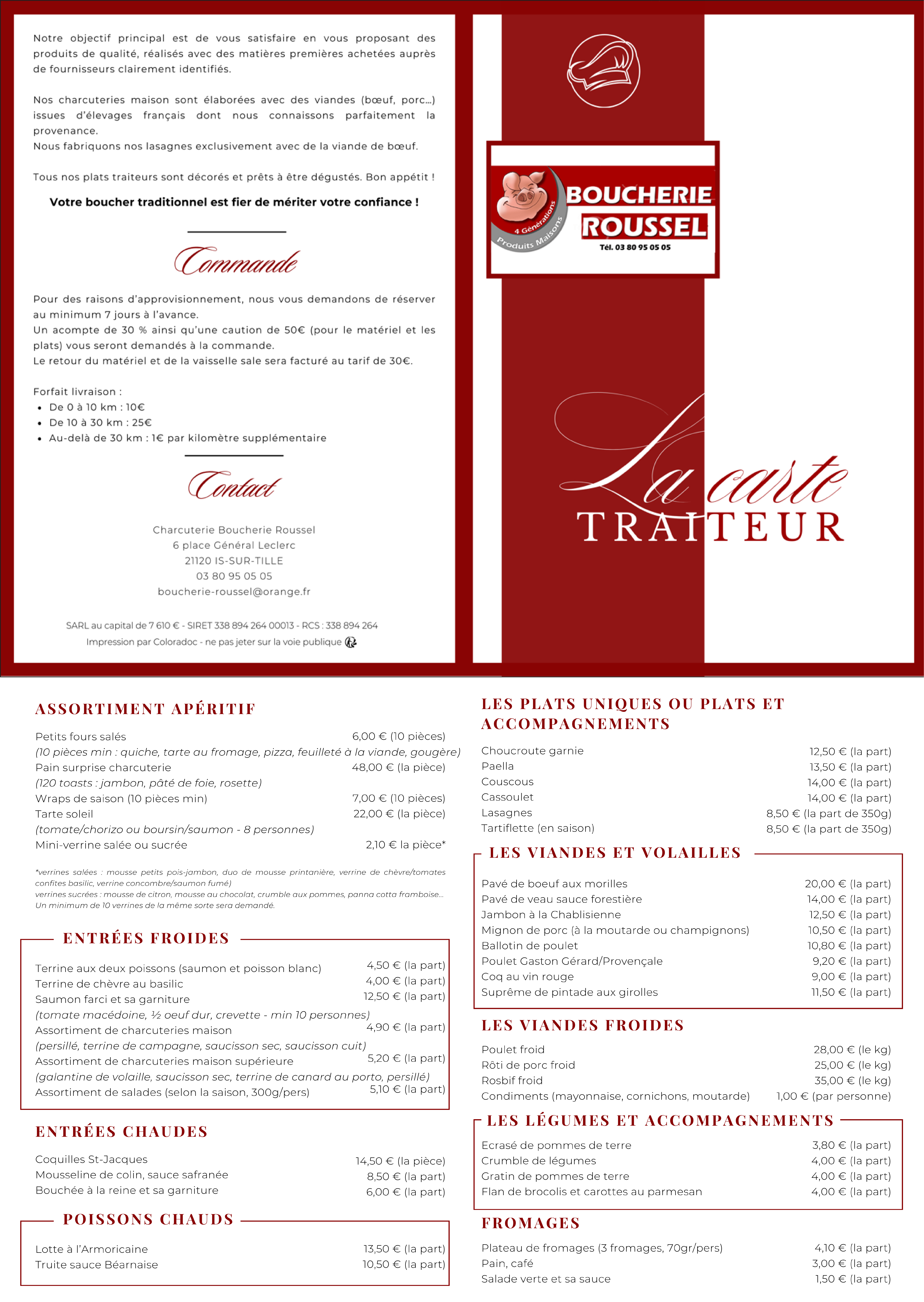 Un menu traiteur est mis en place chaque fin de semaine sur réservation.